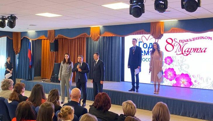 В преддверии Международного женского дня депутаты Волгоградской областной Думы Руслан Шарифов, Станислав Коротков и Екатерина Мицукова поздравили с праздником представителей  образования Кировского района в  школе № 77.