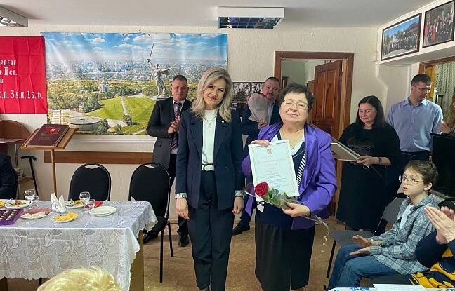 В преддверии Международного женского дня депутат Волгоградской областной Думы Наталия Барышникова навестила Краснооктябрьский Совет Ветеранов Войны и Труда.