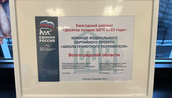 Работа команды проекта «Школа грамотного потребителя» Волгоградской области второй год подряд высоко отмечена на федеральном уровне – партпроект региона входит в «Десятку лучших ШГП». По словам активистов проекта, это результат сплоченной работы команды и ее высокого профессионализма, нацеленный на жилищное просвещение граждан.