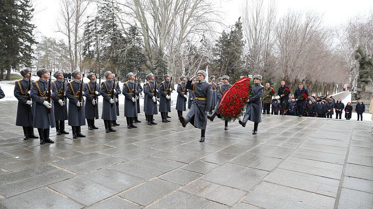 Сегодня, в день 81-й годовщины победы в Сталинградской битве, на главной высоте России — Мамаевом кургане полномочный представитель Президента Российской Федерации в Южном федеральном округе Владимир Устинов, министр сельского хозяйства РФ Дмитрий Патрушев, губернатор Волгоградской области Андрей Бочаров, председатель Волгоградской областной Думы Александр Блошкин, сенаторы РФ, депутаты Государственной Думы и регионального парламента, делегация Курской областной Думы во главе с председателем заксобрания Юрием Амеревым, представители ветеранского сообщества, силовых структур, духовенства, юнармейцы почтили память погибших защитников Родины.